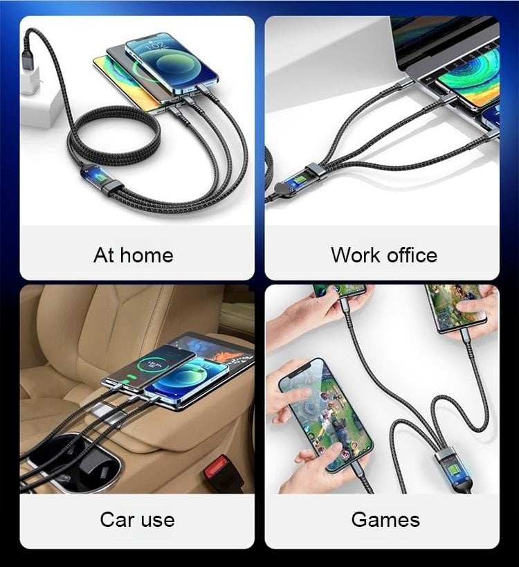 Buy 1 Get 1 Free🔥Transparent Luminous Charging 3-in-1 Data Cable